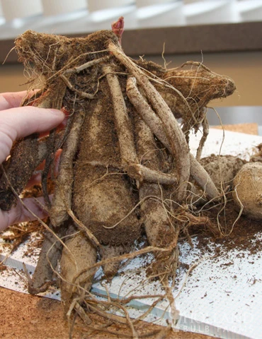 Gardening Tip: After first growth-Pinch out the center growing tip right above the 3rd full sets of leaves for the large dinner plates dahlias. This will create a stronger, more manageable plant with more blooms. It will also make the plant less top heavy to where you have a need for staking.
