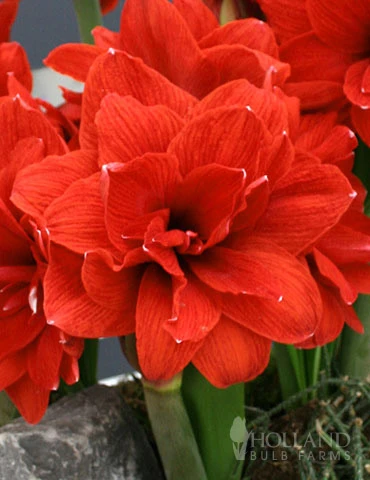 Celica Amaryllis is one of a kind, it is a double blooming type yet forms a rose shaped double bloom. This new and unique amaryllis has orange/salmon blooms with white accented tips.