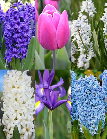 Blue is a color that evokes feelings of tranquility. Surround yourself in a spring garden filled with fragrant and calming blue bulbs mid spring. Although the Blue Beauty Tulips aren’t all blue they have ribbons of blue in the petals that will compliment the hyacinths well.