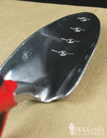 Tired of using your old trowel to painstakingly dig bulbs? Wouldn’t it be great to have a tool that not only digs perfect holes, but also gives you the bulb depth as you dig?