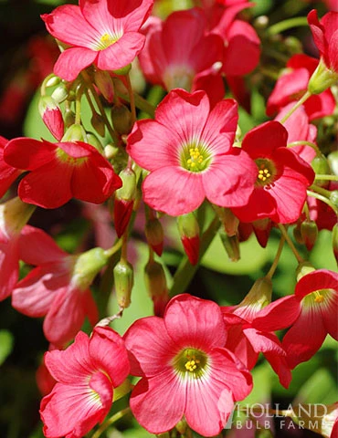 Also known as the Shamrock Bulb or the Oxalis Iron Cross, their leaves are loved as much as the flowers themselves. Used in beds, borders, rock gardens, or containers, they certainly are a conversation piece in your garden due to their vibrant flowers and amazing foliage markings.
