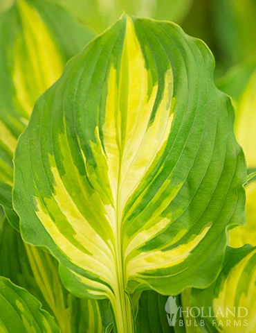 Lakeside Paisley Print Hosta is a robust hosta with heart shaped leaves that have ruffles and texture throughout. Yellow markings start at the petiole of the leave and show through the center of the leaf. Light lavender flowers appear in mid summer. Hosta are easy to grow perennials, and do best in part to full shade. Mix Lakeside Paisley Print Hosta with other hosta’s that have different leaf color, textures and shapes!