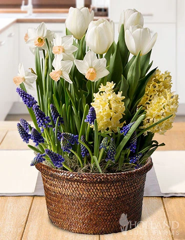 A simply marvelous selection of spring blooming favorites delivered to you. The Marvelous Potted Bulb Garden is ready to grow upon arrival. 16 spring favorites will arise from a potted woven basket to allow you to revel in their marvelous blooms. A sunny location is necessary for optimal blooms and growth from this bulb garden. Place the bulb garden in a sunny window that receives at least 5 hours of sun per day.