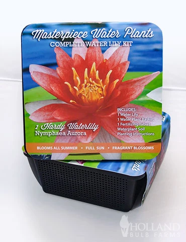 Kit Includes: 1 water lily plant, 1 water plant basket, 1 fertilizing tablet, waterplant soil and planting instructions.