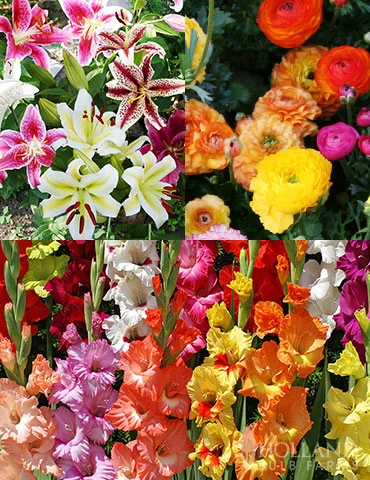 Create a garden with flowers that are perfect for cutting and creating bouquets. All of the flowers in this collection bloom in mid-summer and do well in vases and floral arrangements. Plant in full sun for best results and soil that drains well. The Gladiolus and Ranunculus are hardy in zones 8-10, the Mixed Oriental Lilies are hardy in zones 4-9.