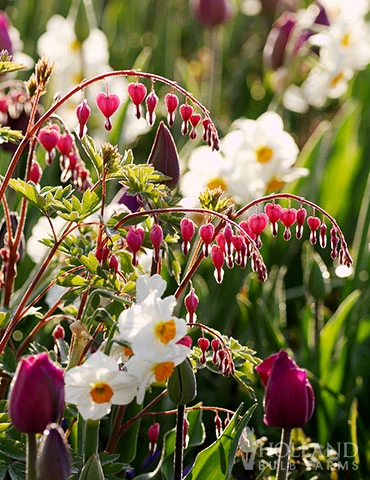 Valentine Bleeding heart is similar to the traditional Old Fashioned Bleeding Hearts, however the blooms are a true deep red color. Like all other old fashioned bleeding hearts this variety will also go dormant in Mid-summer, but will return again the following Spring.