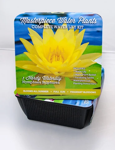 Kit Includes: 1 water lily plant, 1 water plant basket, 1 fertilizing tablet, waterplant soil and planting instructions.